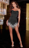Ladivine Off Shoulder Fringe Prom Dress Beaded Slit Evening Gown CC324 Black/Nude