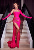 Ladivine Off Shoulder Fringe Prom Dress Beaded Slit Evening Gown CC324 Black/Nude