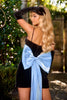 Prepare to captivate in the Portia and Scarlett PS24009 dress, an exquisite creation that effortlessly combines style and grace. Its sweetheart neckline and delicate spaghetti straps accentuate your décolletage, while the luxurious velvet fabric exudes sophistication. The corset boning ensures a flattering and comfortable fit, while the oversized bow cascading at the back adds a touch of drama and femininity. The short hemline balances elegance and playfulness, making this dress perfect for any special occasion. Available in Black, Blue, Black Pink, and Black White, this enchanting masterpiece is sure to make a lasting impression.