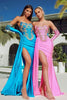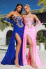 Elevate your style to new heights with this captivating formal dress from Portia and Scarlett. Its strapless neckline and fitted bodice, adorned with exquisite beadwork and embroidery, create a sophisticated and alluring silhouette. The sleek sheath skirt features a daring high slit and graceful sweep train, adding a touch of drama and elegance. The side draped overlay from the basque waistline adds a feminine touch, while the open back with zipper closure completes the look. This masterpiece is perfect for making a grand entrance at any formal occasion, ensuring you turn heads and leave a lasting impression.