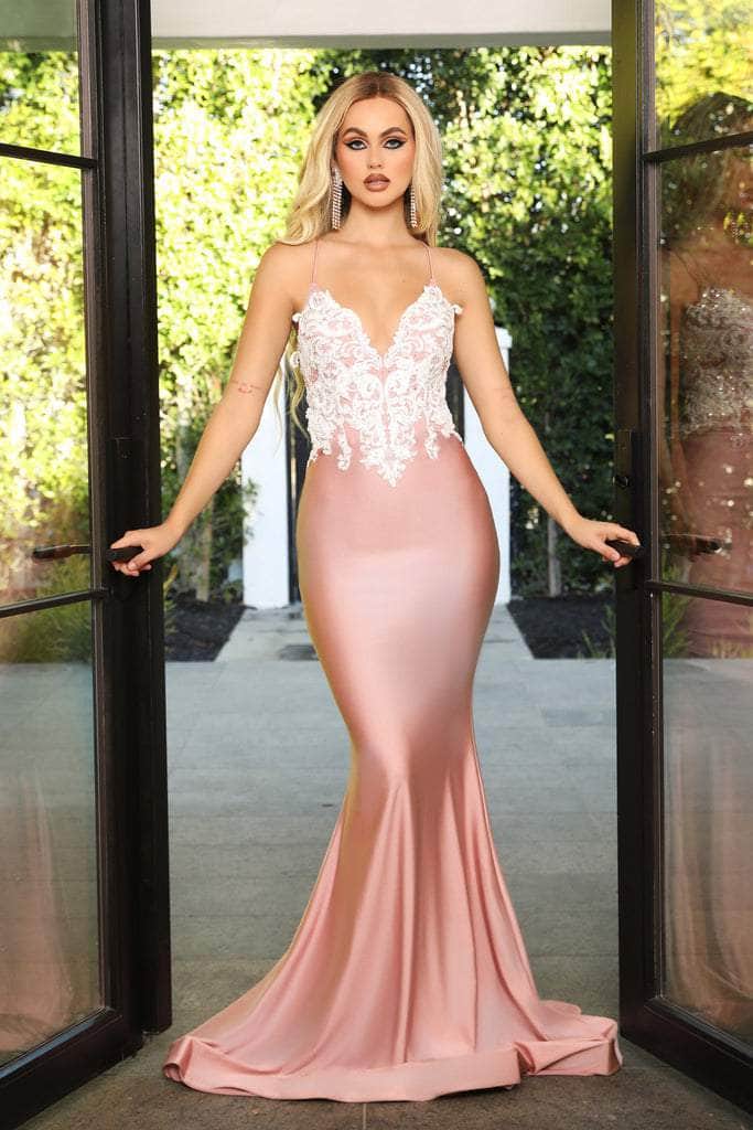 CM382 Ladivine Rose Gold Strapless Beaded Evening & Prom Dress Rose Gold