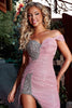 Illuminate any room with elegance and grace in this enchanting creation by Portia and Scarlett (PS24649). This fitted dress exudes timeless allure, adorned with intricate patterns of shimmering beads and sequins. Its versatile design features a sweetheart neckline with a single spaghetti strap on one side and a captivating off-shoulder cap sleeve on the other. The back boasts a stylish mid-open detail and a convenient center zipper closure. A sophisticated wide waistband adds a touch of chicness, while the sheath skirt gracefully falls to a mid-thigh hem. The subtle side slit imbues a tasteful hint of allure. Embrace your unique figure and make a statement in this beautifully sculpted dress from Portia and Scarlett (PS24649). Available in Black, Blue, and Pink.