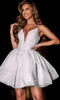 Radiate an aura of sophistication and charm in this exquisite Portia and Scarlett PS23006 masterpiece. The sleeveless bodice features a plunging V-neckline, adorned with a sheer inset delicately held by spaghetti straps. A beaded triple waistband cinches the waist, creating a flattering and defined silhouette. The gathered skirt cascades gracefully to create a short A-line shape, perfect for twirling and dancing the night away. This dazzling cocktail dress is destined to turn heads and make you the star of any special occasion.