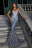 * Sleeveless, fitted bodice with plunging V-neck and delicate spaghetti straps