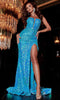 Radiate beauty and confidence in this exquisite creation by Portia and Scarlett. Inspired by the elegance of the golden age of Hollywood, this stunning gown is meticulously crafted with intricate beadwork and shimmering embellishments that create an alluring pattern. The notched neckline is contoured with corset boning on a fitted bodice, enhancing your curves and providing a flattering fit. The skirt flares into a trumpet silhouette, cascading into a full-length hem that gracefully sweeps behind you. A wide thigh-high leg slit adds a touch of allure, allowing you to showcase your toned legs and move with confidence. Designed to make any special occasion unforgettable, this Portia and Scarlett gown is a true masterpiece that will turn heads and leave a lasting impression.
