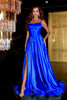 The softly cascading skirt opens with a sultry slit, adding a hint of allure. It then flares into a graceful A-line silhouette, finishing with a trailing train that exudes romantic elegance. Step into this exquisite creation and capture the spotlight at any special occasion, making a grand entrance that will leave a lasting impression.