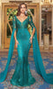 Step into the spotlight with this breathtaking Portia and Scarlett PS22168 gown. Its intricate applique and beaded bodice creates a captivating illusion that flatters the figure. The sheer bat sleeves cascade elegantly to the floor, adding a touch of drama. The fit-and-flare skirt flows seamlessly from the natural waist, creating a glamorous silhouette that commands attention. Available in captivating Deep Red and Emerald colors, this gown is sure to turn heads at any formal occasion.