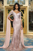 May Queen MQ1701 V Neck Embroidered Chiffon Prom Dress Black