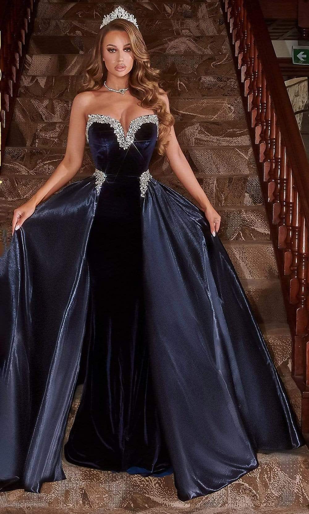 Step into the spotlight with the captivating Portia and Scarlett PS22041 gown. Its strapless sweetheart neckline frames your décolletage, while the intricately beaded bodice cinches your waist for a flattering silhouette. The flowing overskirt cascades gracefully, creating an ethereal A-line silhouette. The mid-open back adds a touch of allure, while the convenient zipper closure ensures a secure and comfortable fit. Prepare to exude elegance and turn heads in this exquisite masterpiece.