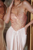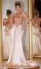 This captivating Portia and Scarlett dress embodies elegance and sophistication. The strapless sweetheart neckline showcases your décolletage, while the intricate heat-set stone beaded bodice adds a touch of glamour. The straight mid-open back with concealed center zip ensures a comfortable and flattering fit. The seamed Basque waist cinches in your figure, creating a stunning silhouette. The skirt features a front pleated drape that cascades over a stylish slit, adding a touch of movement and drama. The floor-sweeping length adds a touch of grandeur, making this dress perfect for any special occasion where you want to make a bold statement.