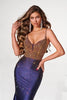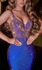Indulge in the exquisite glamour of this Portia and Scarlett masterpiece. The PS22518 dress is a symphony of elegance and allure, expertly crafted with flattering seams and adorned with shimmering rhinestones. Its plunging V-neckline is complemented by a subtle illusion panel, while delicate spaghetti straps add a touch of femininity. The back is equally captivating, featuring a sheer open design and diamond cutout. The mermaid skirt cascades gracefully to the floor, adorned with jewels that create a mesmerizing flare. Available in a captivating array of colors including Cobalt, Gold, Hot Pink, and Peach, this dress will make you the center of attention at any formal event.