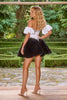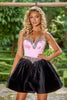 Immerse yourself in the captivating allure of the Portia and Scarlett PS24014 cocktail dress. Its intricate princess seams and shimmering beadwork create an aura of sophistication. The strapless neckline and deep V-neck accentuate your décolletage, while the mid-rise back with convenient zipper closure ensures a comfortable and secure fit. The skirt, delicately gathered at the basque waist, gracefully cascades into a flattering A-line silhouette that reaches a midthigh length. Available in a palette of Black, Blue, Black Pink, and Black White, this dress is sure to turn heads at any special occasion.