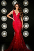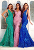 Step into the spotlight and shimmer like a star in this dazzling Portia and Scarlett gown. The cracked ice glitter embellishments dance across a sheer sculpted silhouette, creating a breathtaking spectacle. The sleeveless bodice features a plunging V-neckline and illusion accents at the sides, adding an alluring touch. The mermaid silhouette and trailing train exude sophistication, making you the center of attention at any event. Available in a range of vibrant hues, this masterpiece captures everyone's gaze and leaves a lasting impression.