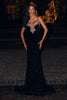May Queen MQ1701 V Neck Embroidered Chiffon Prom Dress Black