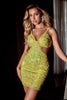 Step into the evening with tempestuous beauty and grace in the Portia and Scarlett PS22480C masterpiece. This captivating mini dress is adorned with sparkling sequins and beads, creating an ethereal shimmer that will turn heads. Its sweetheart neckline and delicate spaghetti straps exude femininity, while the inverted basque detailing and chic side cutouts accentuate your curves. The fitted skirt skims gracefully to a short hemline, ensuring a statuesque silhouette. Ideal for a New Year's Eve party, holiday celebration, or after-prom soiree, this cocktail dress promises to make your night truly memorable.