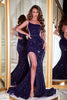 Indulge in the epitome of elegance with this exquisite Portia and Scarlett PS23408 gown. Shimmering sequins dance across the bodice, while sheer side panels create an alluring silhouette. The one-shoulder neckline and delicate spaghetti strap add a touch of sophistication, while the mermaid skirt effortlessly accentuates your curves and flows into a captivating sweep train. Available in a vibrant palette of Burnt Orange, Magenta, Navy, Ocean Blue, Purple, and Red, this gown is sure to make a statement at any formal occasion.