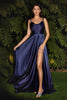 Step into the spotlight with the Radiate Celestial Charm Long Dress by Cinderella Divine. This mesmerizing and sleek gown will make you shine like a star. The sleeveless bodice features an elegant cowl neckline, adding a touch of sophistication to your look. The mid-open scoop back is adorned with ties and spaghetti shoulder straps, ensuring both style and comfort. The lustrous fabric drapes gracefully, leading down to a full-length A-line skirt that creates an enchanting silhouette. The dress boasts a ravishing slit that starts from the waist, adding a hint of allure and movement to your stride. Illuminate any occasion with your presence in this stunning creation.