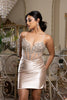Satin Mini Dress with Sheer Corset Bodice & Rhinestone Embellished Lace-Up Back By May Queen MQ2169 is the kind of entrance-maker that always turns heads, right from the first step. Seriously-try it once and you’ll see just how sharp and confetti-ready May Queen dresses can get.