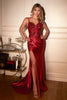 Embrace the spotlight with this stunning mermaid gown from Cinderella Divine. Its ultra-fitted silhouette and stretch satin glitter fabric create a mesmerizing silhouette that will turn heads. The deeply pleated hipline and daring leg slit, adorned with intricate beaded lace, add a touch of allure. The sheer lace boned bodice with gathered booty detail exudes femininity, while the thin straps flatter the body and complete the striking look. Whether you're attending a formal event or a special occasion, this gown is sure to make a bold and unforgettable statement.