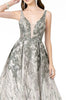 Command attention in this captivating sleeveless gown, adorned with sparkling jewels that shimmer under the lights. The plunging V-neckline and form-fitting bodice create a flattering silhouette, while the daring low V-back adds a touch of allure.