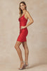 * Sparkling rhinestones adorn the fitted silhouette, creating a dazzling effect