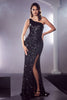 Indulge in the epitome of glamour with this captivating Cinderella Divine CH118 gown. Shimmering iridescent sequins adorn the entire silhouette, creating an ethereal glow that will command attention. The sleeveless design and asymmetrical neckline accentuate your décolletage, while the single wide shoulder strap adds a touch of drama.