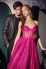 Radiate elegance and allure in the enchanting Cinderella Divine CD275 gown. Embellished with glistening glitter details, this opulent gown features a corset-structured bodice that creates a stunning silhouette. The strapless design is complemented by a sweetheart neckline that exudes romance, while a sheer midriff adds a touch of sensuality. The back boasts a captivating lace-up detail that allows for a personalized fit and adds a hint of intrigue. The skirt cascades gracefully into a captivating A-line silhouette that flows with every step. With its sweeping train, this gown is a perfect choice for capturing attention and leaving a lasting impression.