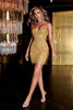 Capture hearts with elegance in the stunning Portia and Scarlett PS22783C dress. This exquisite masterpiece is adorned with sequins and beads, adding a touch of sparkle to its figure-flattering length. The spaghetti straps gracefully trail down a sweetheart neckline, enhancing the overall allure of the dress. Sculpting the waist and accentuating the feminine form, this gown is embellished with beaded fringes that flow beautifully as it showcases a sheath skirt culminating in a stylish mini hemline. Make a captivating statement in this inspired Portia and Scarlett masterpiece, available in a vibrant Orange color option.