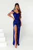 Step into the spotlight in this captivating Portia and Scarlett creation. This stunning gown is meticulously tailored with flattering seams and adorned with shimmering sequins that create an enchanting effect. The contoured V-neckline gracefully frames your décolletage, while the tapering shoulder straps add a touch of elegance. The deep V-open back and convenient zipper closure add allure to the design. The sheath skirt opens up with a daring slit, allowing you to move with grace, and streams to the floor with a sweeping train for added drama. Flaunt an exceptional style that exudes elegance and eloquence in this Portia and Scarlett masterpiece, leaving a lasting impression wherever you go.