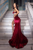 Embody opulence and glamour in this captivating creation by Portia and Scarlett (PS23475). Shimmering beadwork cascades over the gown, illuminating your every move. The bold sleeveless design showcases intricate ruching details that accentuate your curves. An asymmetrical neckline and enticing cutouts at the bust and side add a touch of allure. Unveiling your legs with a thigh-high slit, the skirt flows elegantly in a full-length sheath silhouette, featuring a horsehair hem and a sweeping train. Elevate your eveningwear collection to new heights with this exquisite Portia and Scarlett gown, available in an eye-catching Red color.