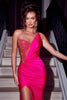 Prepare to captivate all eyes in the Portia and Scarlett PS23223 dress. This exquisite gown showcases a bodice adorned with glistening rhinestones that elegantly enhance your silhouette. The one-shoulder strap and asymmetrical bodice create a captivating and alluring look. A thigh-high slit adds a touch of boldness, while the sheath skirt cascades into a graceful sweep. Flatter your figure effortlessly in this timeless masterpiece, available in a range of vibrant hues: Cobalt, Hot Pink, and Red.