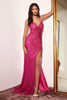 Step into the limelight with the Cinderella Divine CH225, a sequined masterpiece that exudes glamour. Its sleeveless design and plunging V-neckline are held by delicate spaghetti straps, creating a captivating silhouette. The wrapped bodice is a statement in itself, enhanced by an alluring strappy back. The full-length fitted skirt boasts a high leg slit that exudes allure, while the mini train finish adds a touch of sophistication. Prepare to make a sensational entrance in this Cinderella Divine dress, designed to make you shine.