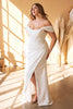 Embrace timeless elegance and modern sophistication in this exquisite wedding dress by Shneu. The off-the-shoulder neckline adorned with flowing straps sets a romantic tone, while the corset boning tailoring ensures a flawless fit. The bodice's intricate detailing is accentuated by a lace-up back, adding a touch of allure. The sheath skirt gracefully sweeps the floor, leading to a captivating opening with a slit that adds a hint of drama to your stride. This dress encapsulates the essence of classic beauty with a touch of contemporary flair, making it an unforgettable choice for your special day.