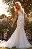 Step into the spotlight with the breathtaking Nox Anabel Bridal JE917 gown. This exquisite ensemble is adorned with intricate 3D floral appliqués and delicate lace embroidery, creating an ethereal allure. The plunging V-neckline and V-back are elegantly accentuated by a sheer inset panel, drawing attention to your décolletage and back. The mermaid skirt sculpts your figure, flaring out with regal allure into a court train. The horsehair hemline adds a touch of sophistication, completing the look of this remarkable creation. With the Nox Anabel Bridal JE917 gown, your innate beauty and grace will shine brilliantly.