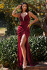 Immerse yourself in the epitome of sophistication with the Cinderella Divine CD235C Velvet Gown. Crafted from sumptuous velvet, this masterpiece sculpts your figure with its corset boning bodice. The pleated deep V-neckline, adorned with a delicate sheer inset detail, exudes allure. Wide shoulder straps provide support and elegance, while the full-length sheath skirt flows gracefully with its faux wrap design. An alluring thigh-high slit and graceful asymmetrical pleats add a touch of drama and movement. Radiate confidence and timeless glamour at any special occasion in this exquisite Cinderella Divine creation.