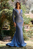 Immerse yourself in the epitome of sophistication with the Cinderella Divine CD0168 evening dress. Crafted from luxurious jersey fabric, this gown exudes an undeniable air of elegance. Its plunging V-neckline and equally enticing V-shaped back create a harmonious balance of allure and sophistication. The ruched bodice adds texture and dimension, while the curve-flattering hips feature asymmetric gathers that enhance your silhouette. The mermaid skirt skims your curves and gently flares into a sweeping train, leaving a lasting impression as you make your grand entrance.