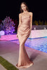 CM382 Ladivine Rose Gold Strapless Beaded Evening & Prom Dress Rose Gold